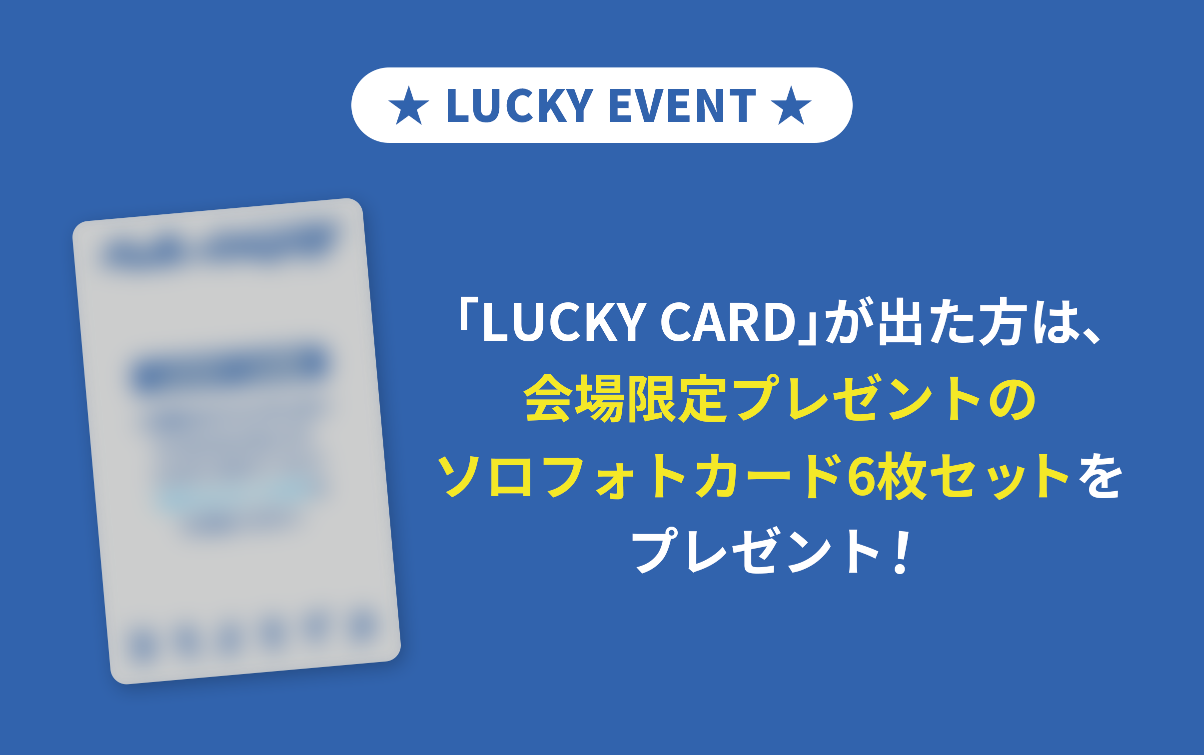 LUCKY CARDが出た場合、「ソロフォトカード6枚セット」をプレゼントいたします。